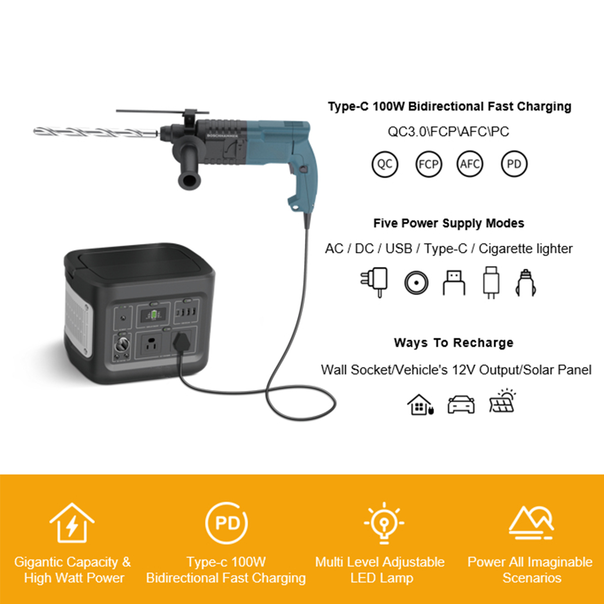 З цією портативною електростанцією ви також можете насолоджуватися використанням електроінструментів для дрилі на відкритому повітрі.
